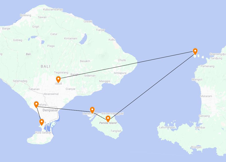 Begins in Canggu, Bali and ends in Ubud, Bali.